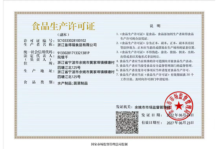浙江備得福食品有限公司, 創建于1992年,是一家專業生產小包裝榨菜、泡菜等現代化農業企業,公司位 于美麗富饒,處處充滿商機和希望的開發熱土——杭州灣畔。滬杭甬高速公路、329國道在公司的南大門橫貫而過, 東臨深海大港——北侖港,西臨蕭山國際機場,北靠舉世矚目的杭州灣跨…【更多】